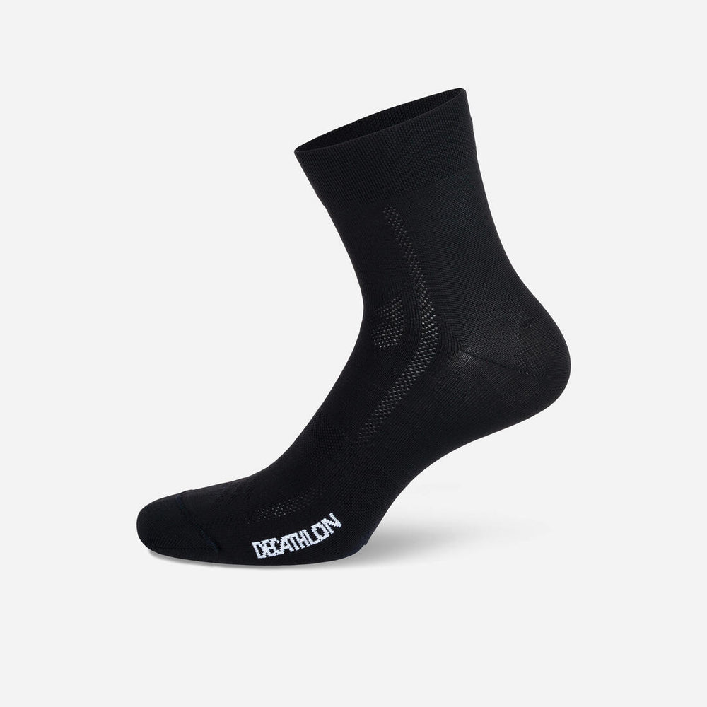 Lorsque vous pratiquez le vélo, tant pour vos déplacements qu'en compétition, vos pieds sont très sollicités. Le mouvement peut alors provoquer des frottements, qui, couplés à la transpiration, se révèlent très déplaisants. C'est pour cette raison qu'une paire de chaussettes adaptée à sa pratique offre un confort non négligeable ! Cette paire de chaussettes B'TWIN 500 évacue la transpiration et offre du confort lors de vos sorties régulières grâce à son à son composant léger.