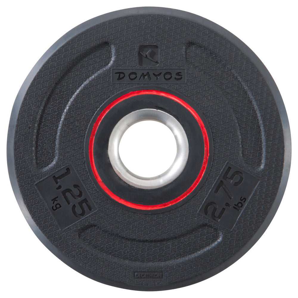 Disque musculation en caoutchouc 1,25kg 28mm, fonte en partie recyclée