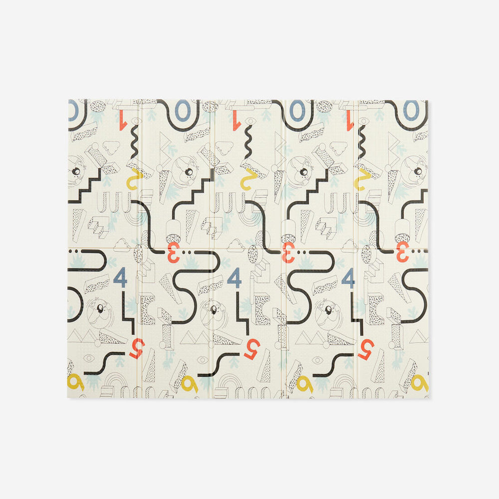 Un tapis d'éveil pliable. Côté pile, des dessins pour éveiller votre enfant. Côté face, s'adapte aux salons qui se transforment en salle de jeu. Produit validé par une psychomotricienne.